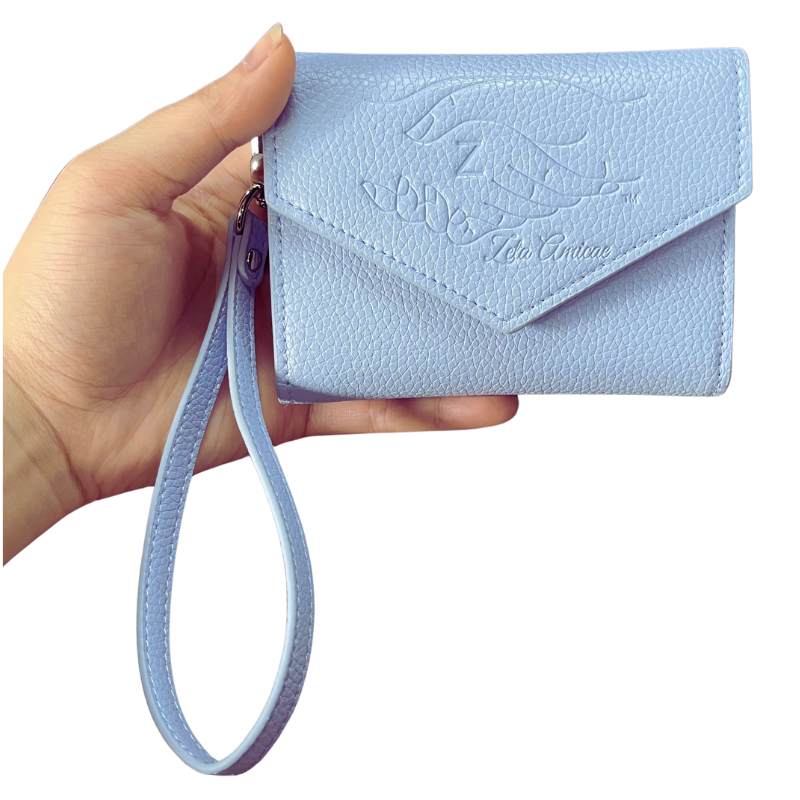 The Amicae Mini Wristlet is the perfect combination of style and functionality. Crafted in sleek, durable vegan leather material, this compact wallet features the iconic Amicae emblem, showcasing your auxiliary pride with elegance.