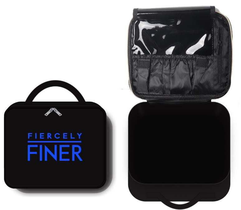 Elevate your style with this FIERCELY FINER exquisitely crafted and waterproof makeup/travel case, designed to perfection. Complete with a 11-piece set of meticulously labeled FINER makeup brushes, this case boasts 3 compartments, each with a protective flap for your brushes, a small zippered section for convenient storage, and a spacious open area for your toiletries or beauty products. Whether it's a conference or a travel adventure, this exceptional piece is an absolute must-have.