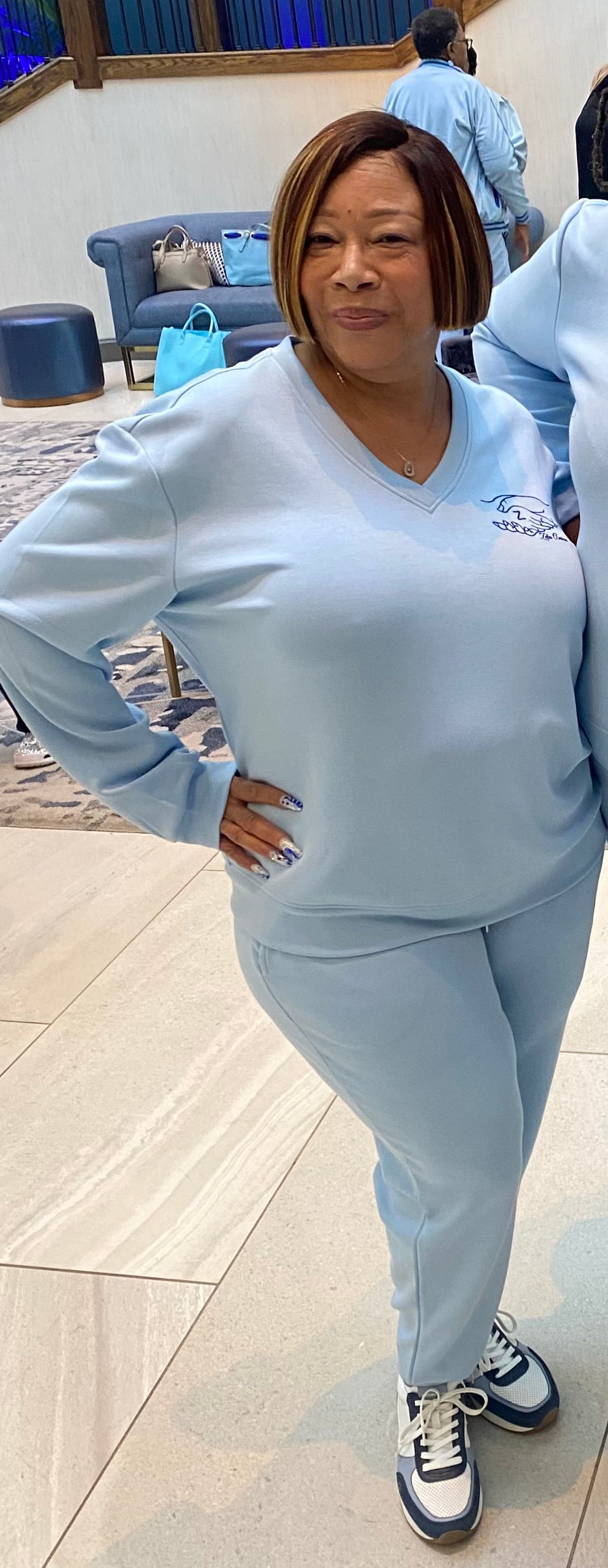 Crafted in a refreshing light blue, this two-piece set features soft jogger pants and a cozy sweatshirt, making it ideal for lounging or on-the-go. Adorned with the Zeta Amicae Logo, this set proudly represents friendship making it a must-have for those who cherish our bonds of friendship and sisterhood. This set was featured in the Q4 2023 Winter Box.
