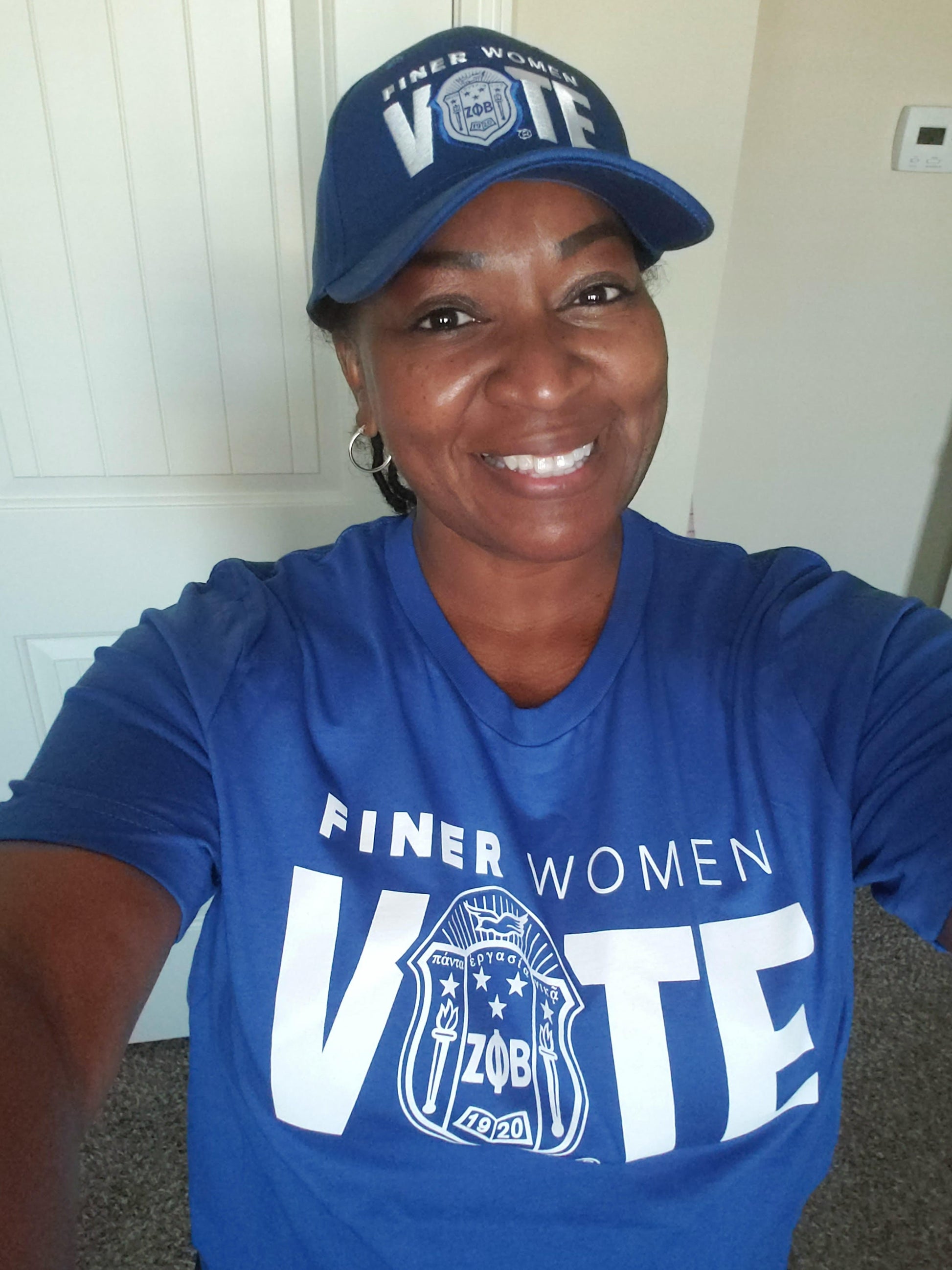 This custom designed royal blue and white hat features the shield of our beloved sorority and a message that is perfect for any election season. Rain or shine, a Finer Woman will always be ready with this versatile hat!