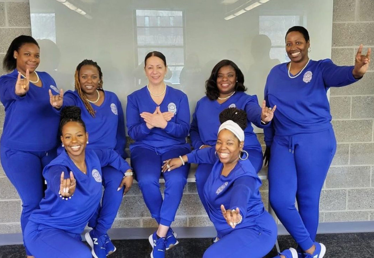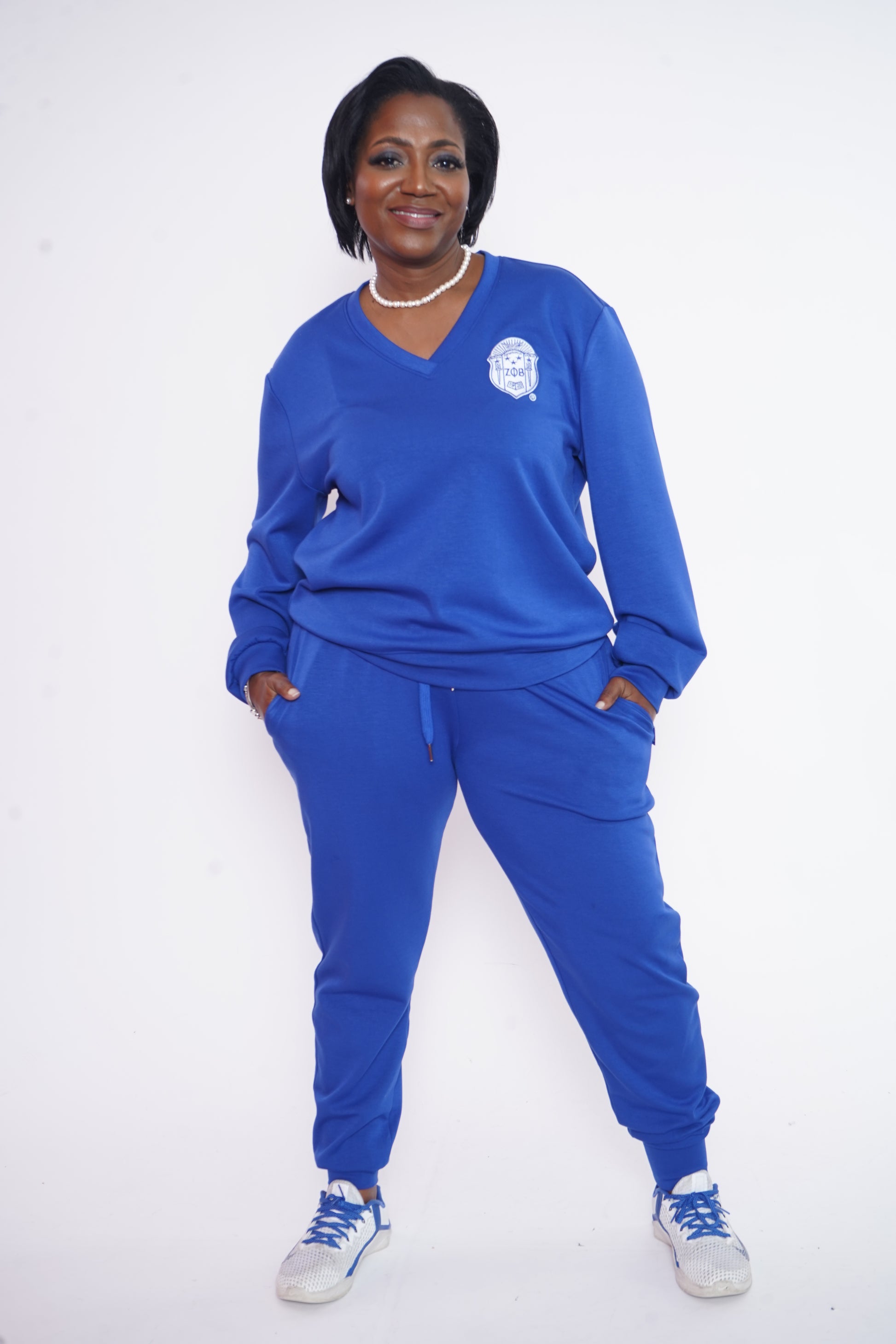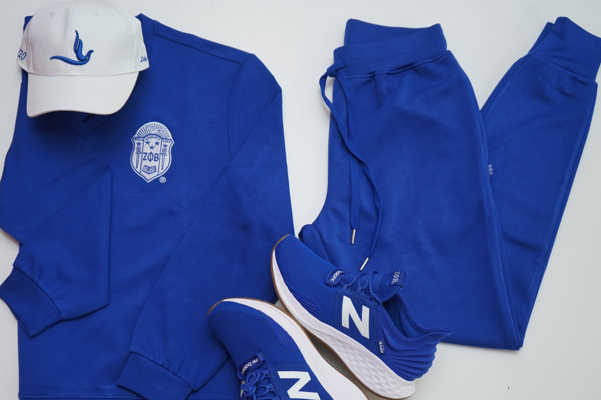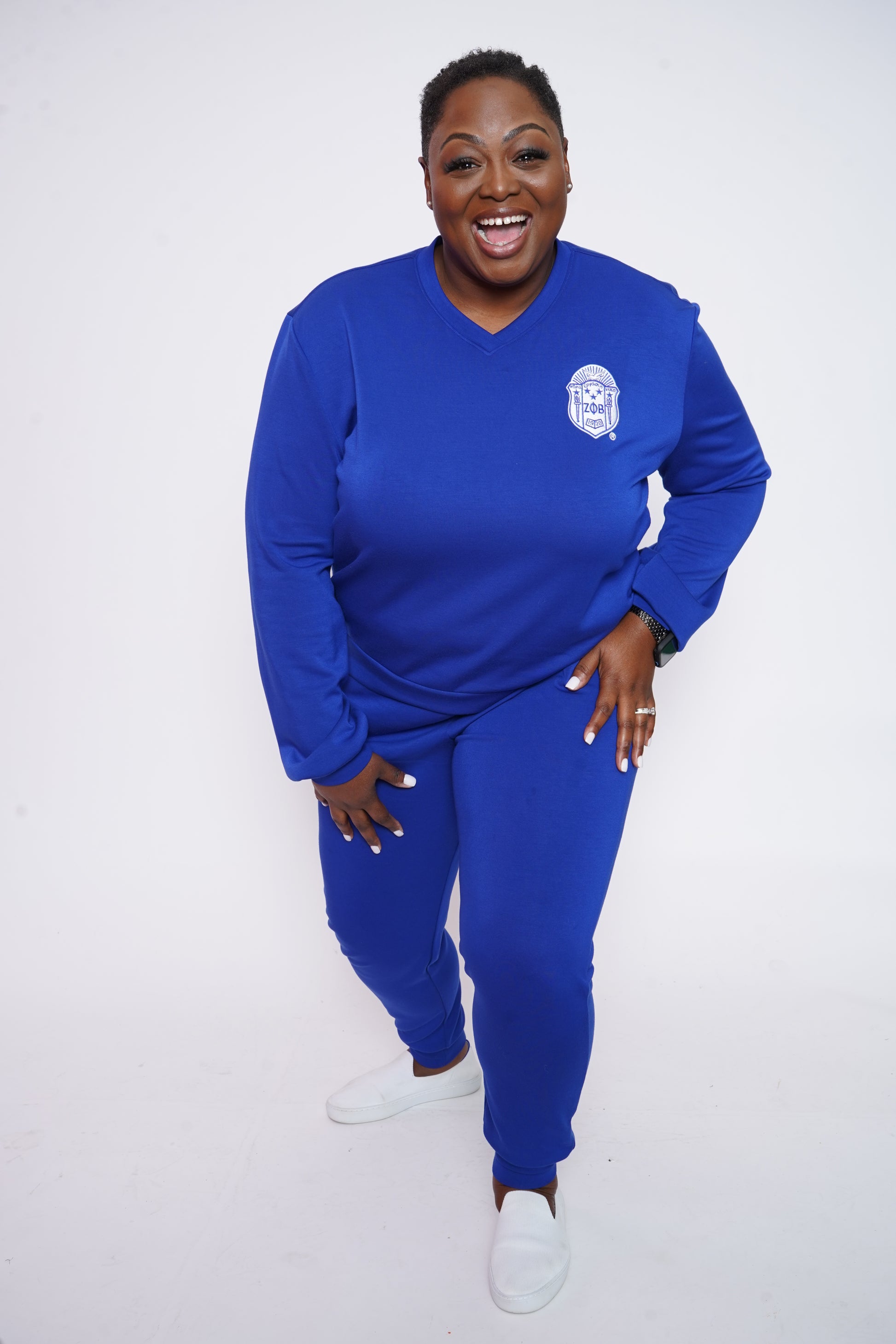 Made in the sorority's royal blue and adorned with the Zeta Phi Beta shield on the chest, it's a stylish way to represent sisterhood with comfort and ease. This ensemble was featured in the Q4 2023 Winter Box.
